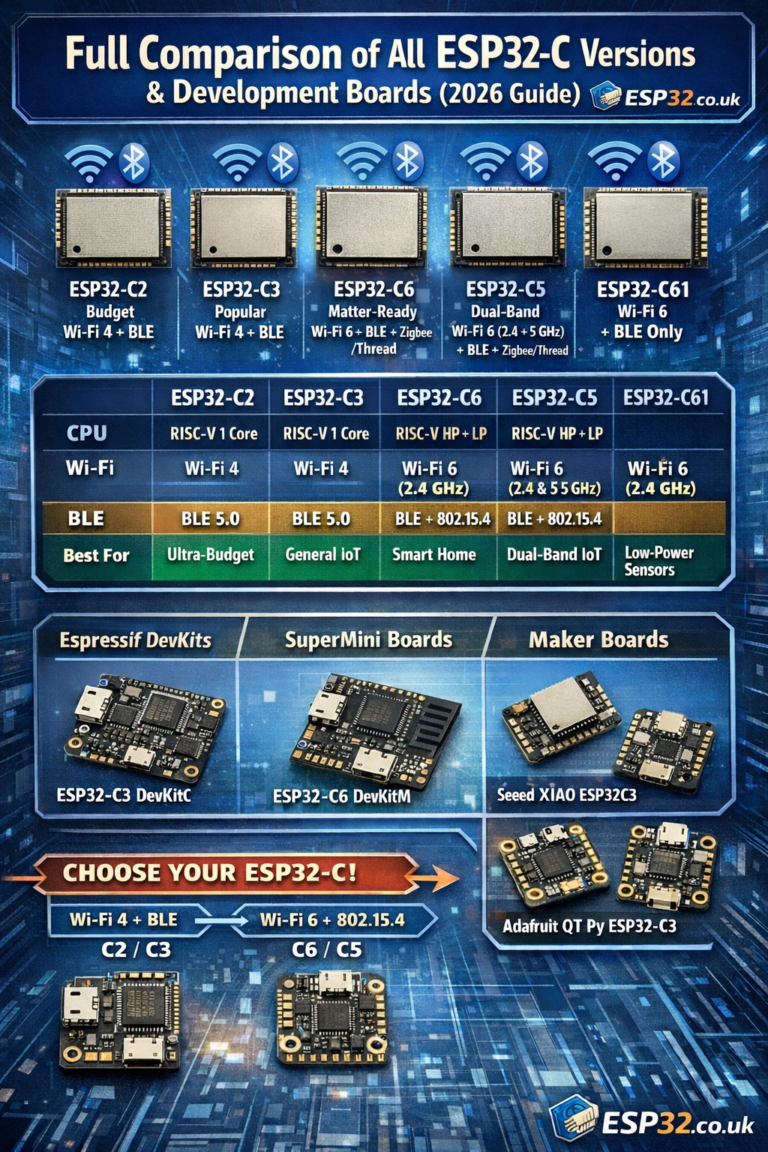 If you’ve looked at Espressif’s lineup lately, you’ve seen the shift: “ESP32” is now a family, and the ESP32-C series is the RISC-V branch built for modern, power-efficient IoT. In 2026, the C-series splits cleanly into two camps: Below is…