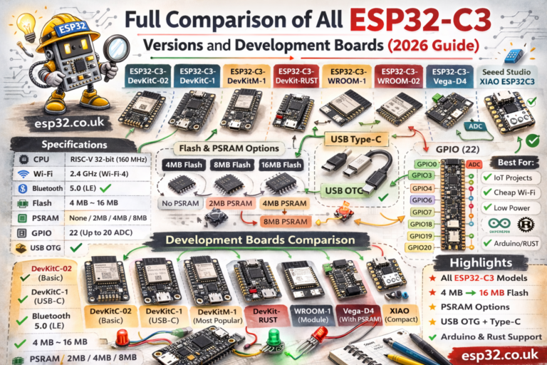 If the ESP32-C3 was the reliable workhorse, the ESP32-C6 is what you pick in 2026 when the project touches Home Assistant, Matter, Thread, or Zigbee. Why? Because it’s one of Espressif’s first “triple-radio” parts that puts Wi-Fi 6 (2.4 GHz…