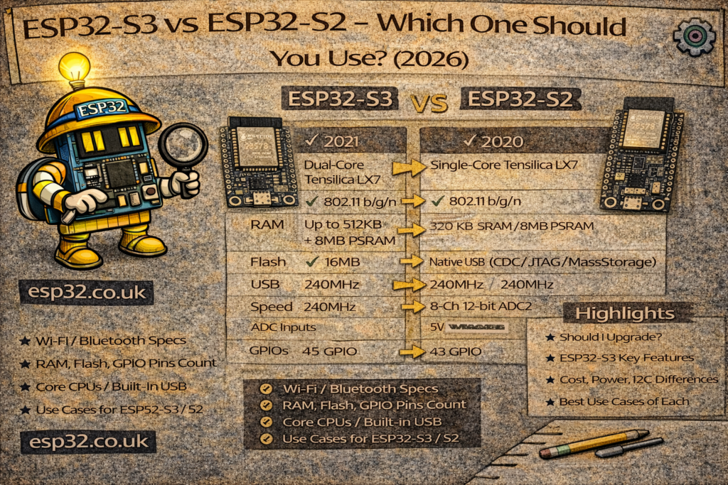 - You want a more “future-proof” platform – Espressif’s recent devkits and AI/vision demos are mostly S3-based.